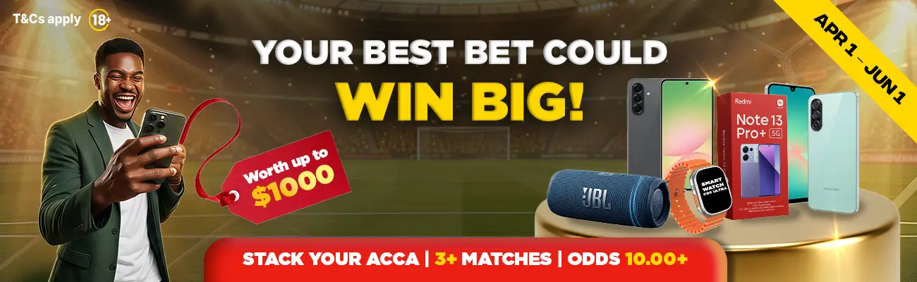 ** Ranking is based on the sum of the total odds of all qualifying wining multiples (accumulators) bet slips and settled by each player during the promotion period. Prizes are awarded based on this cumulative total.”